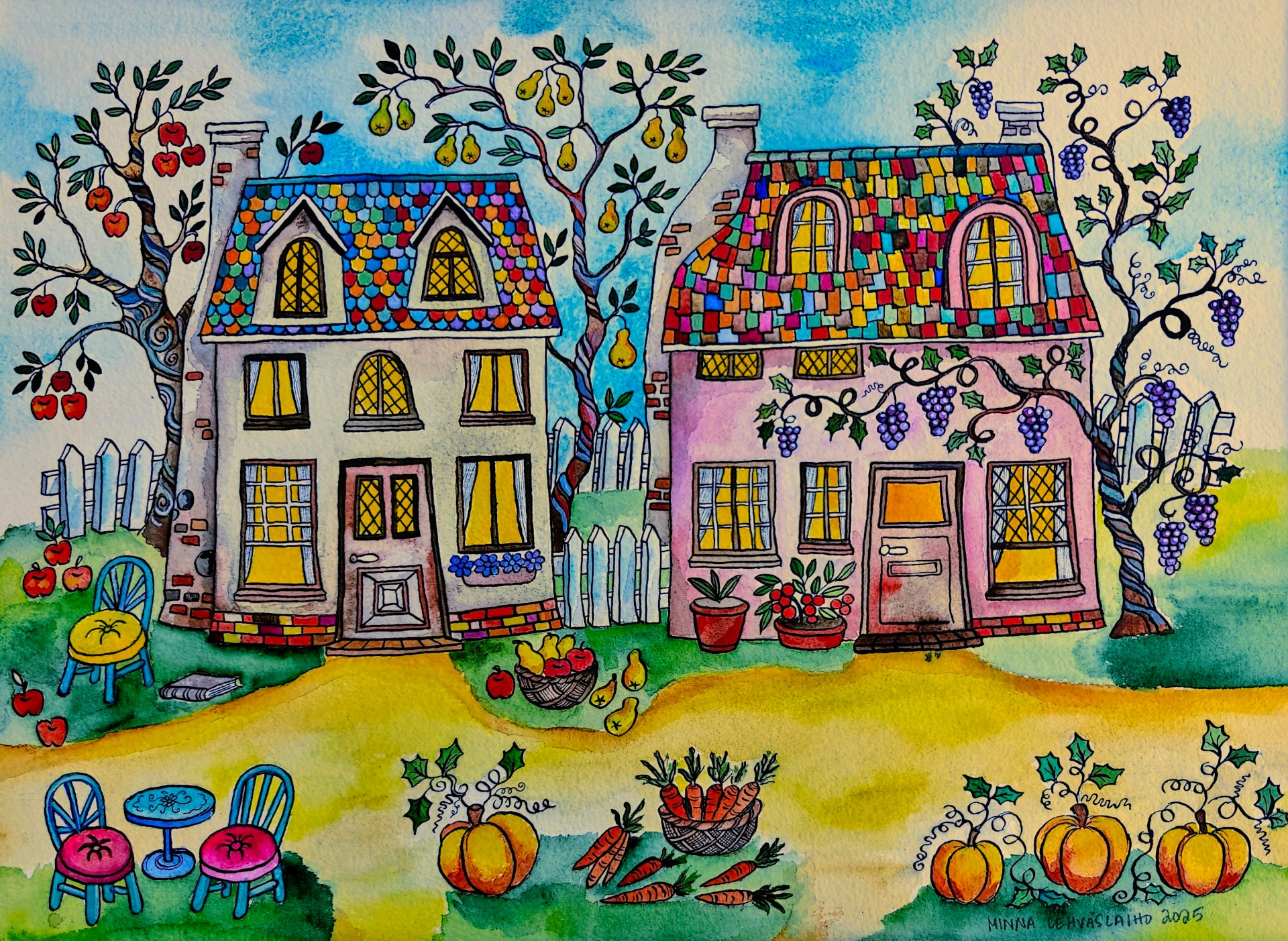 Milujem maľovanie domov, detí, zvierat a stromov. Maľujem domy, ktoré pôsobia priateľsky a prívetivo. Maľujem stromy, ktoré ponúkajú farebné listy, kvety alebo ovocie, stromy, ktoré by vás mohli dokonca mohli pozvať, aby ste na nich vyliezli.